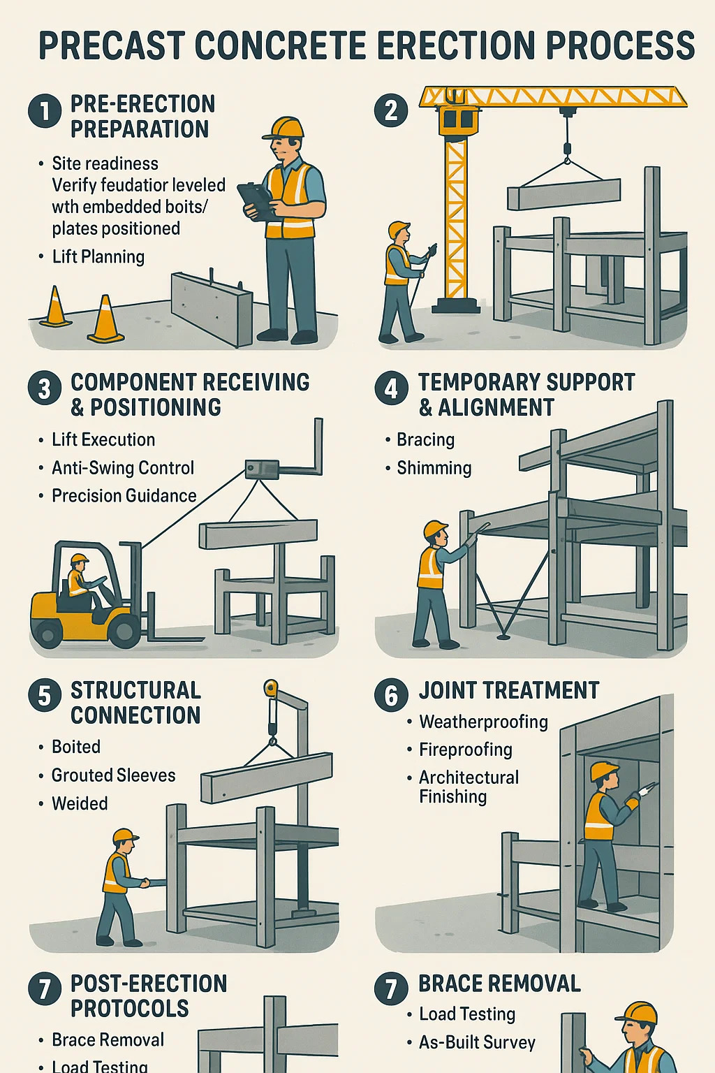 Planificarea ascensorului: instalarea secvenței componentelor (de exemplu, stâlpi → grinzi → plăci).